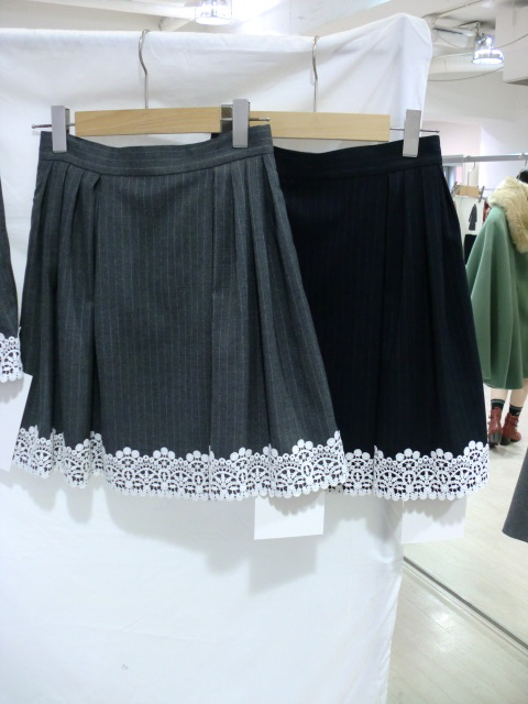 【0863】ペンシルストライプとレースのミニスカート 23,800Yen+税